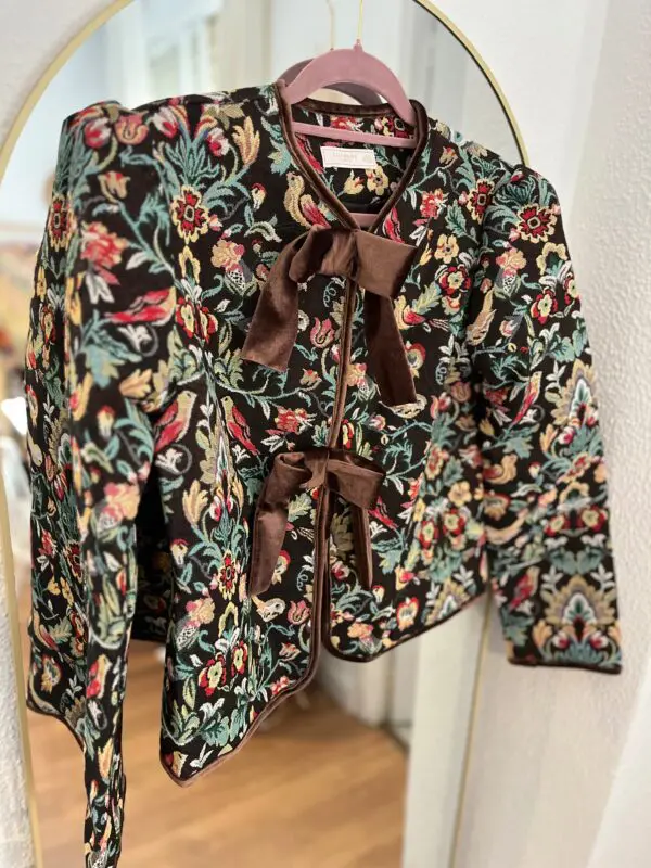 chaqueta con estampado bordado y lazada en terciopelo