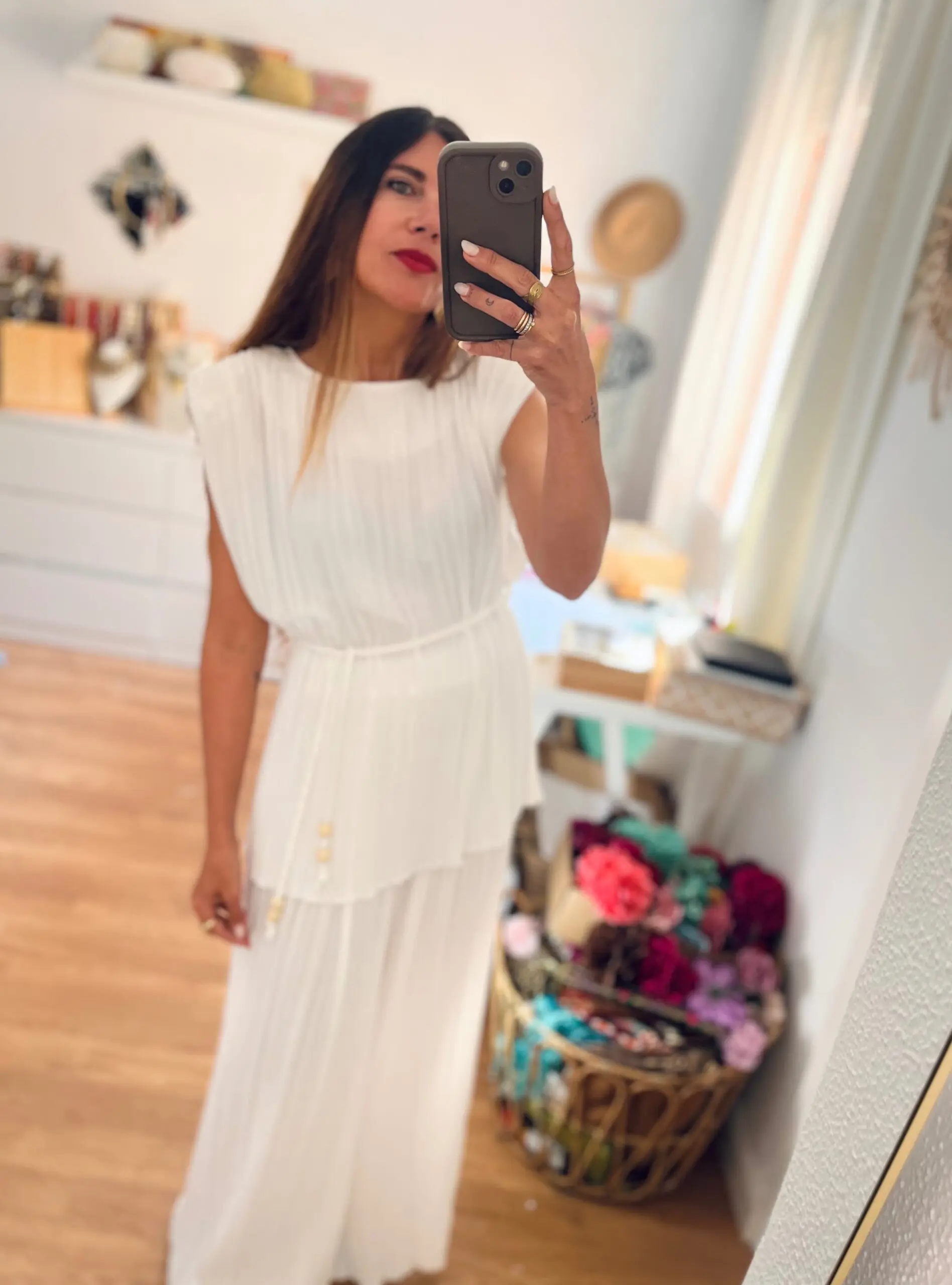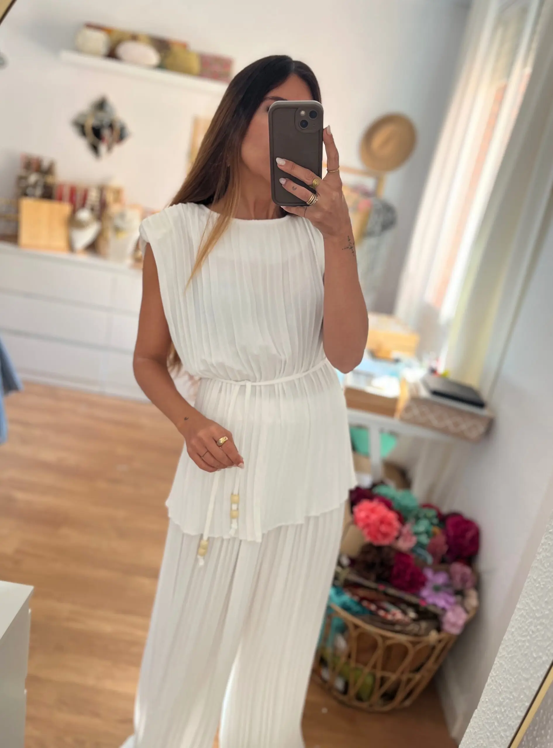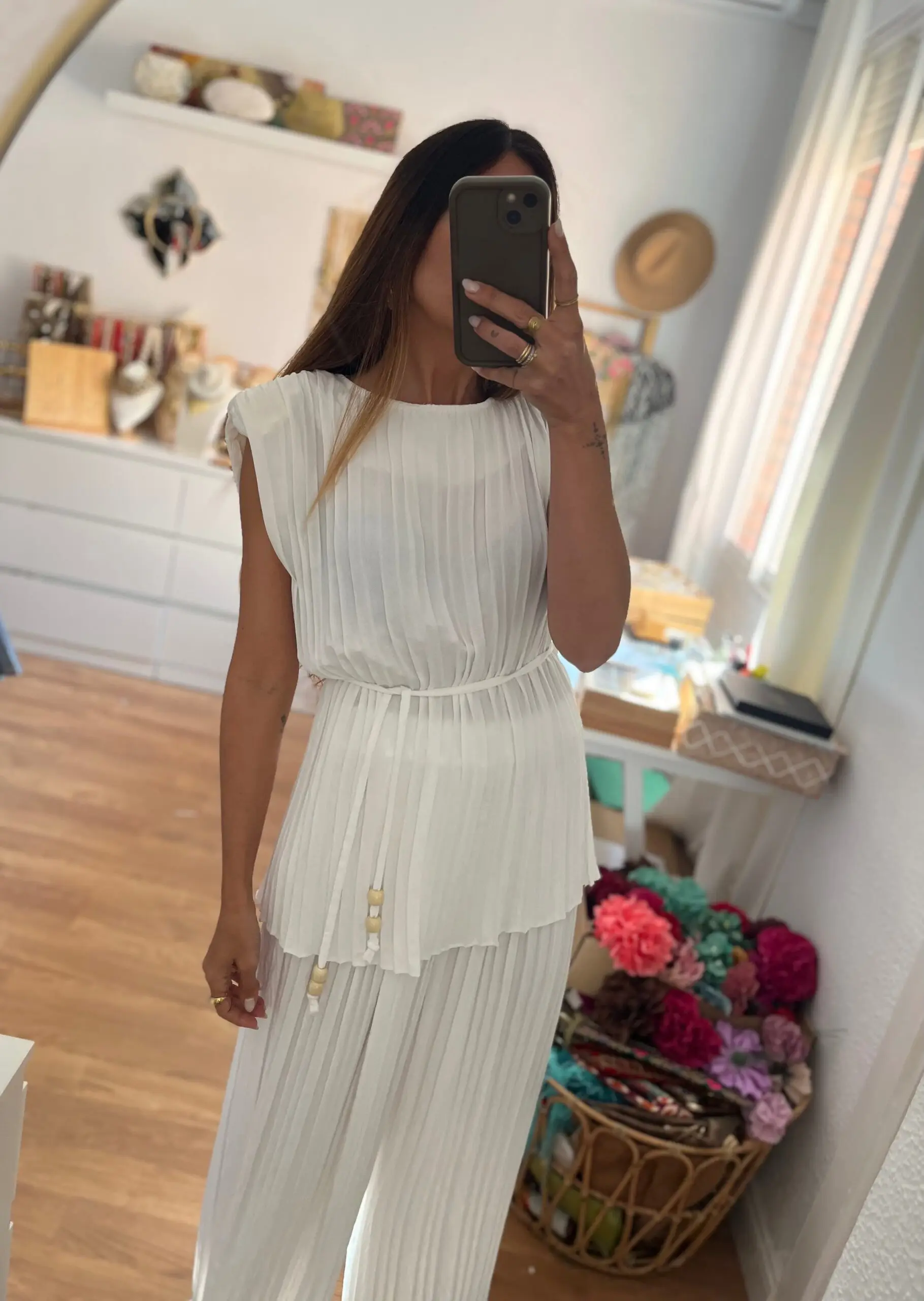 Conjunto de blusa y pantalón. Cinturilla elástica