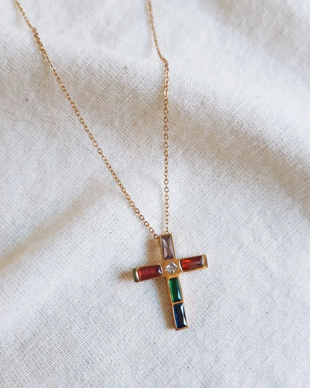 Inicio / JOYAS / CADENITAS Y CHOKERS / Cruz lagoa colores
