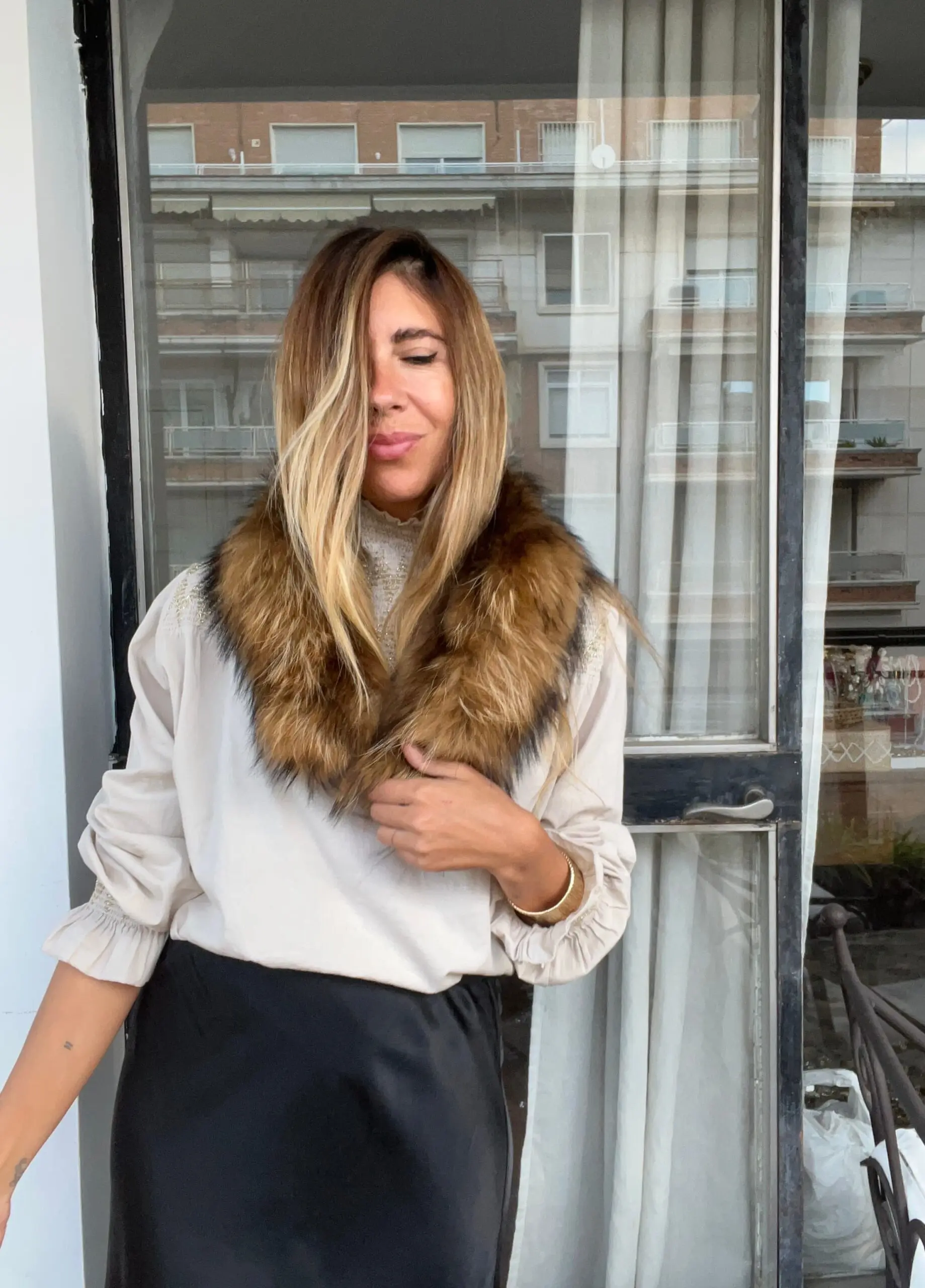 Cuello pelo natural. Clip en los extremos para cerrarlo.