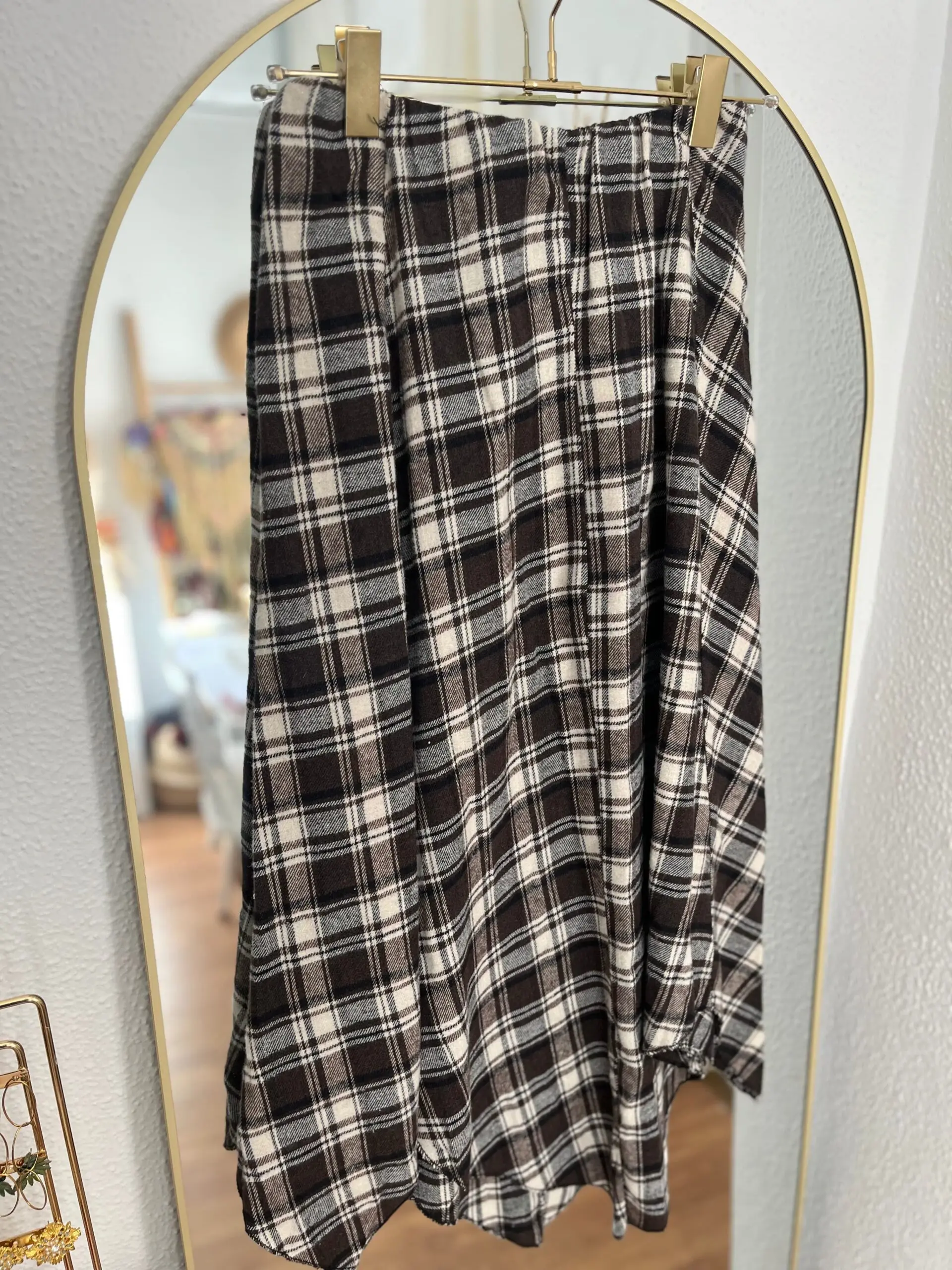 Inicio / ROPA CASUAL E INVITADA / Faldas y pantalones / Falda Vichy asimétrica marrón