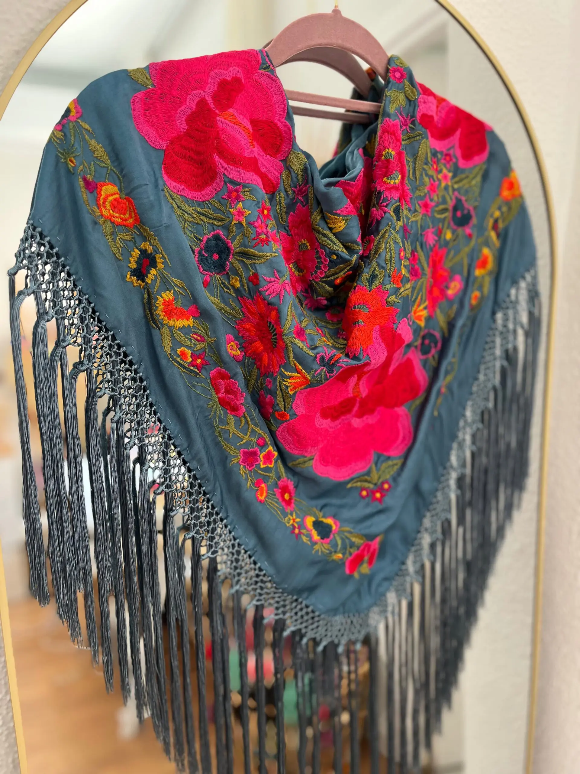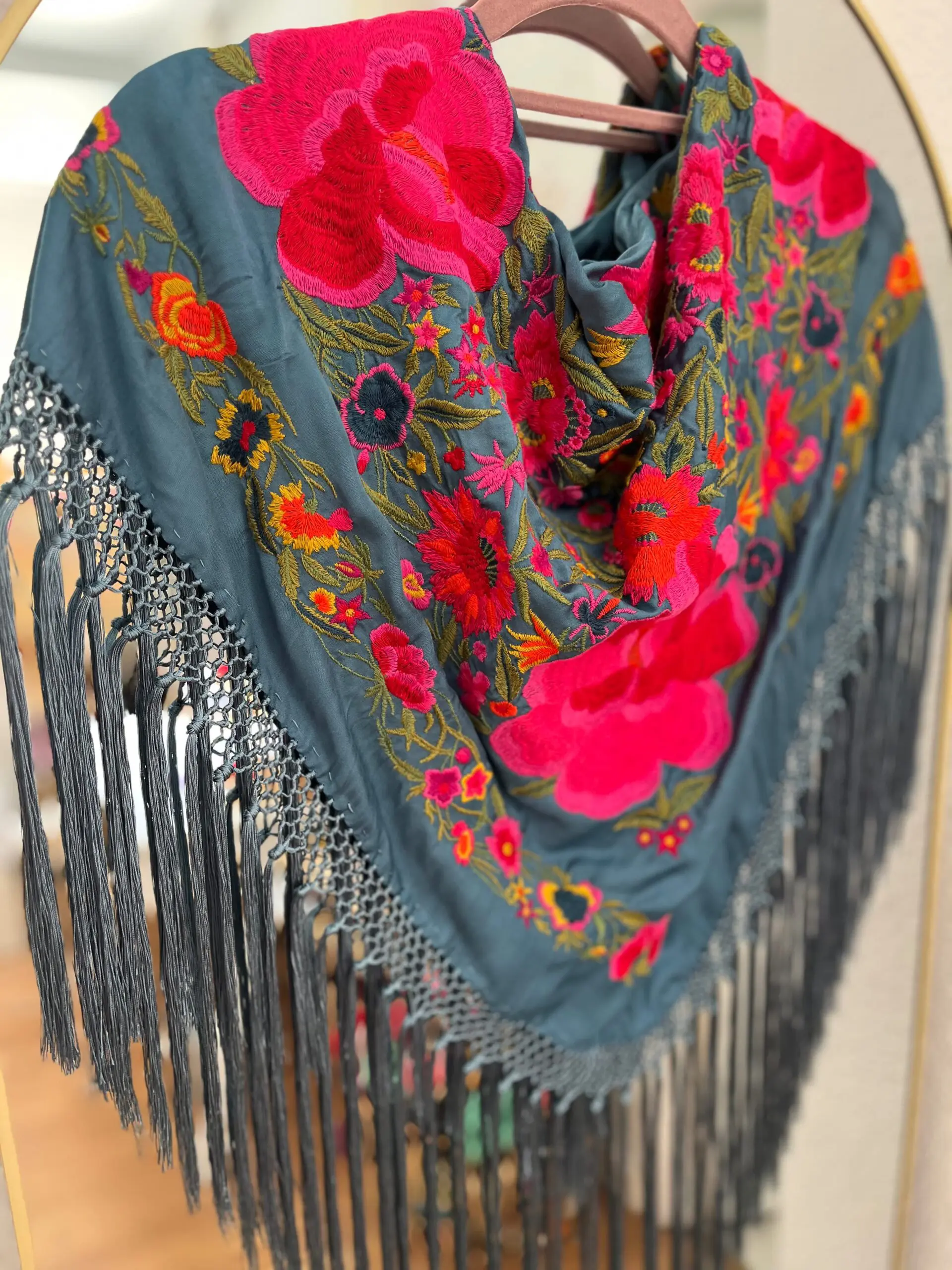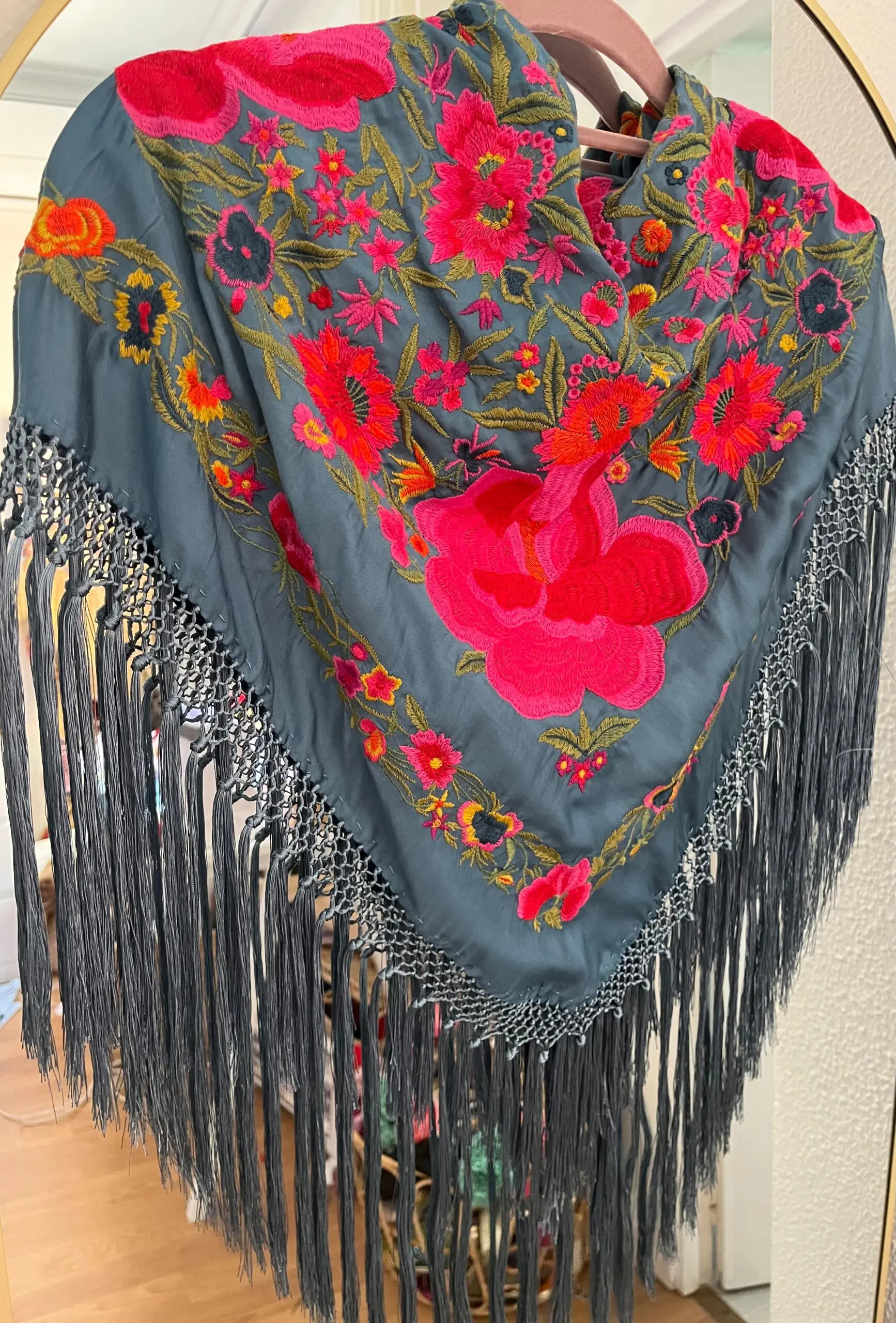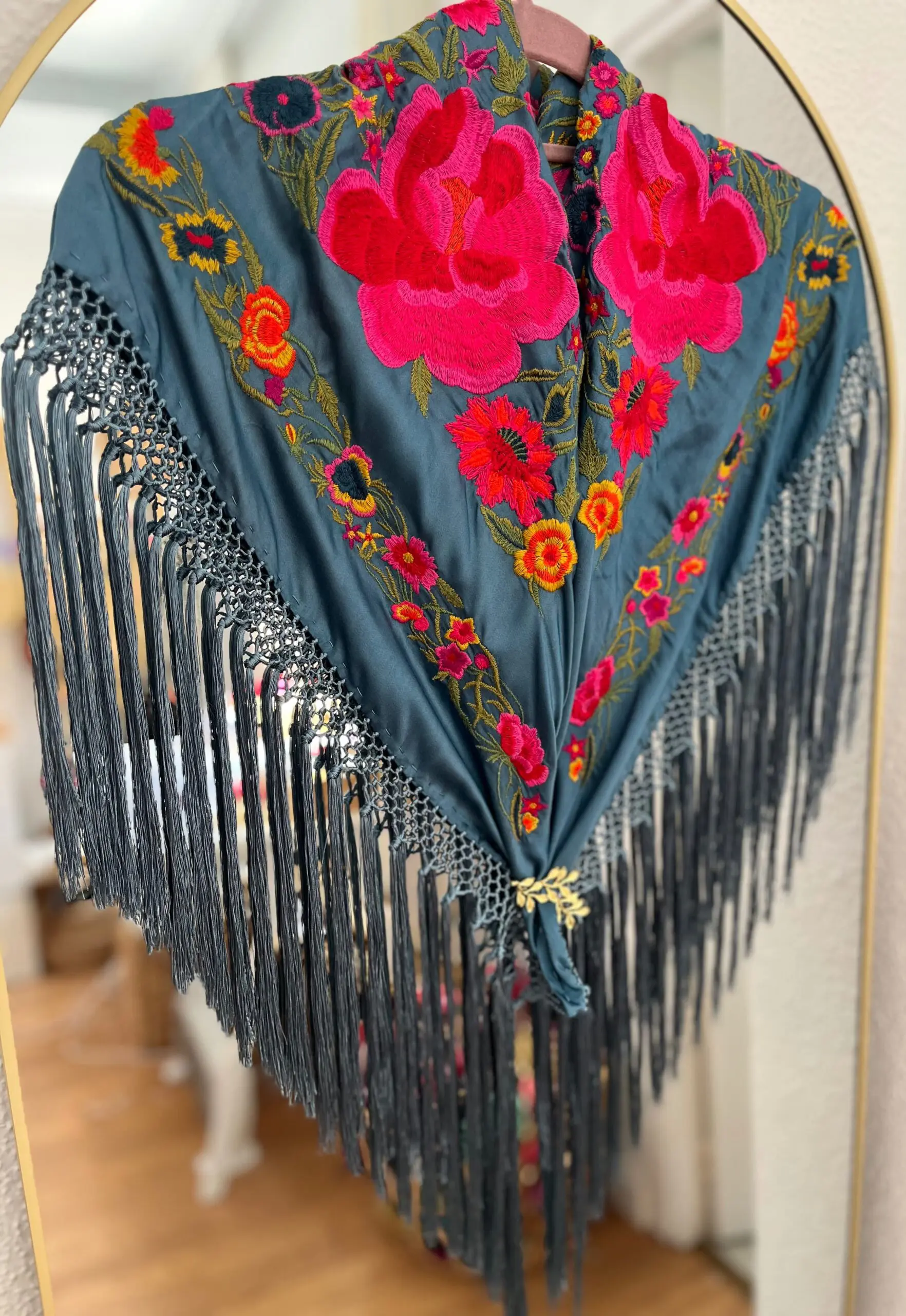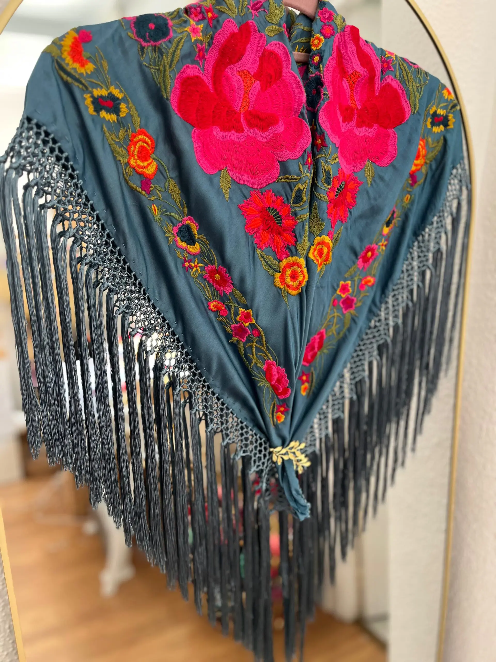Mantoncillo artesanal de algodón de seda flecado a mano.