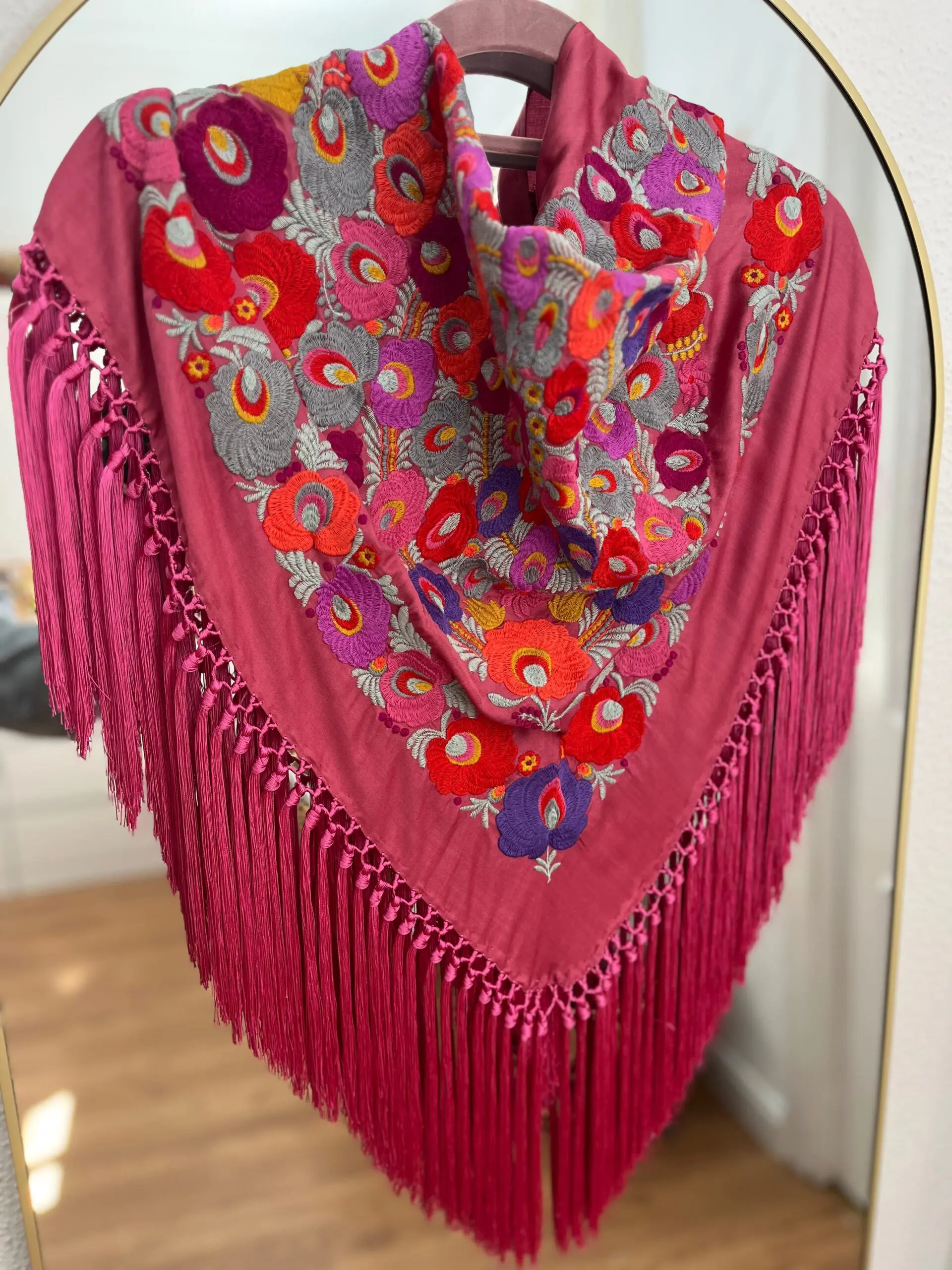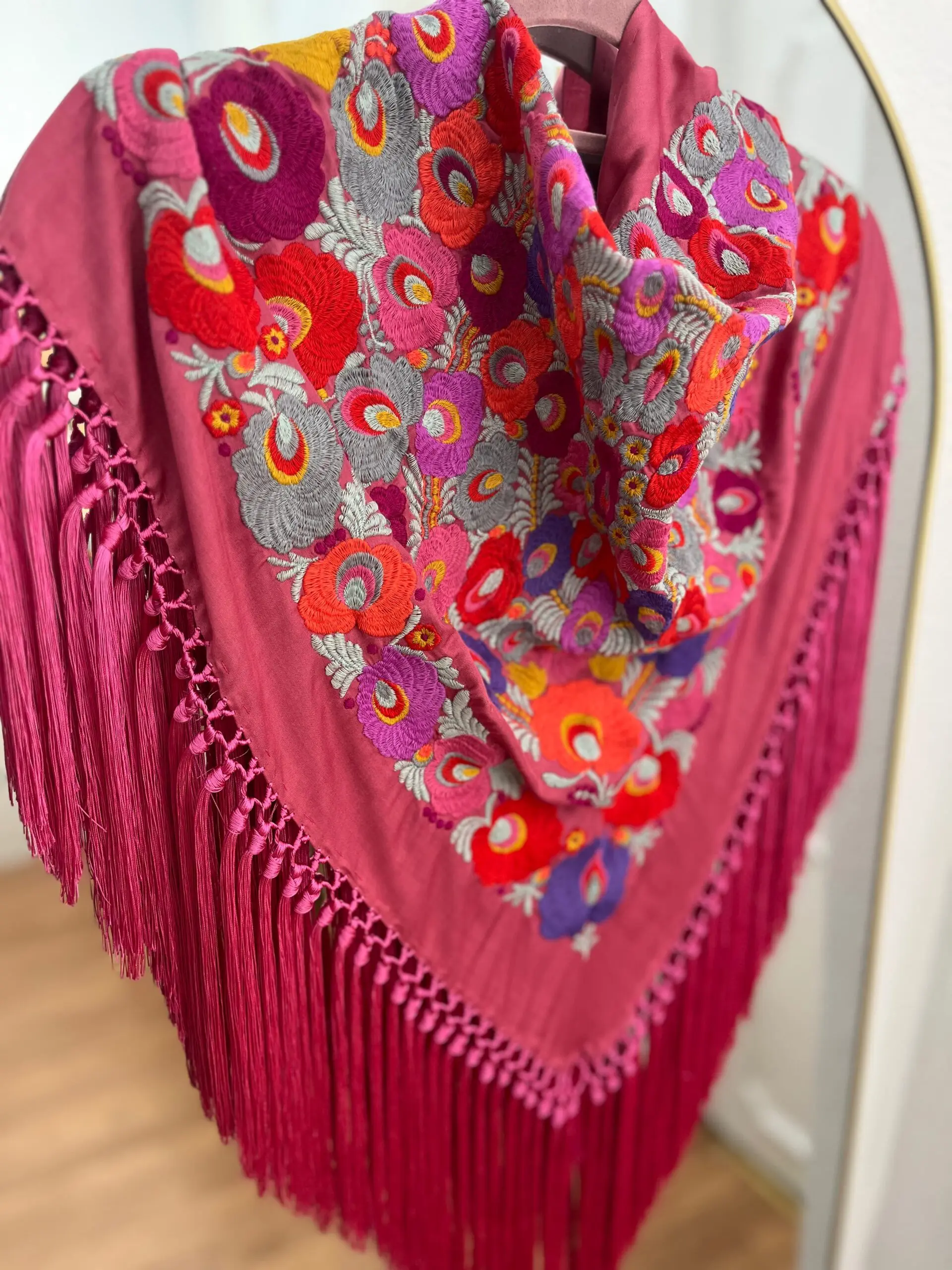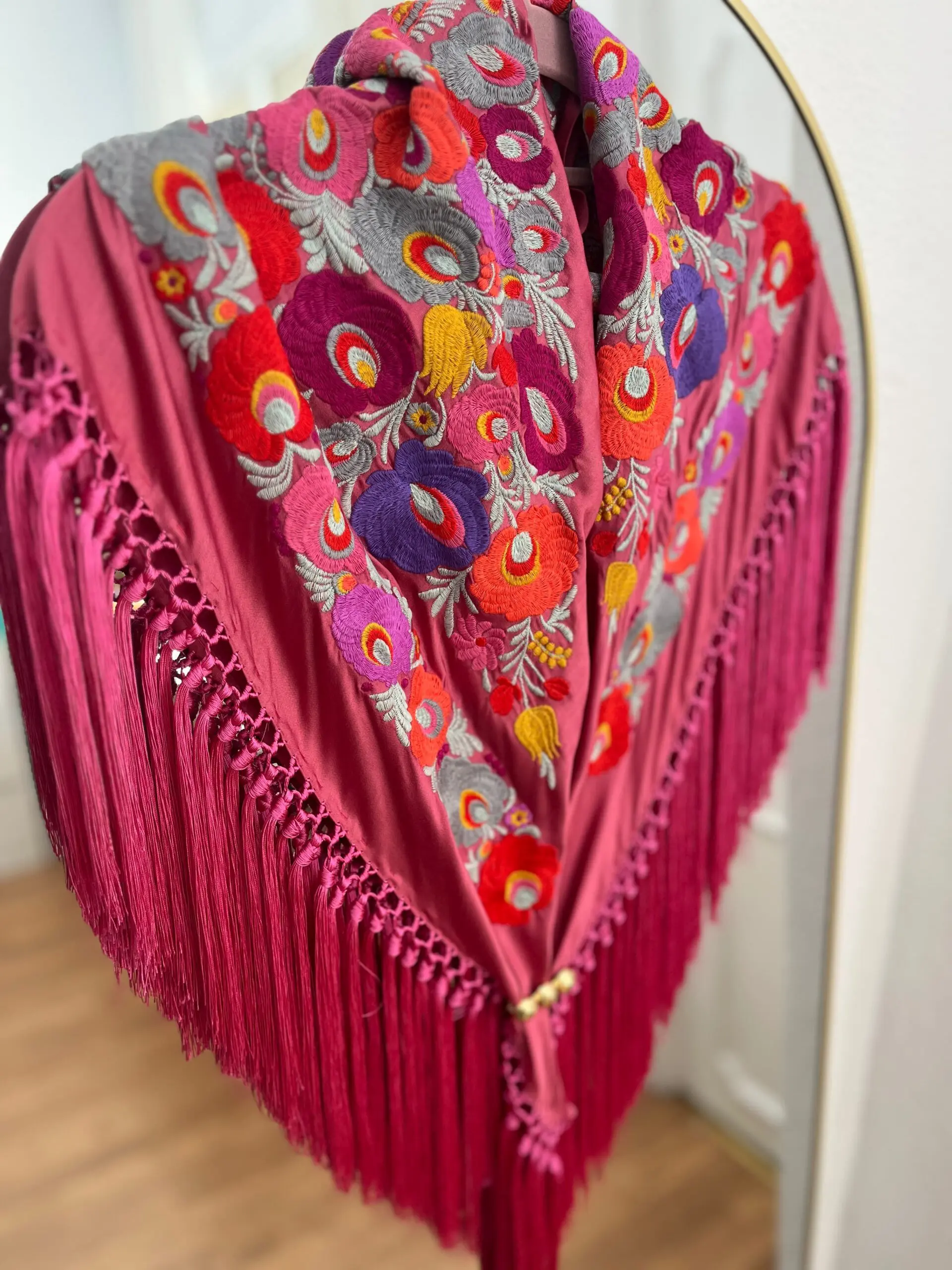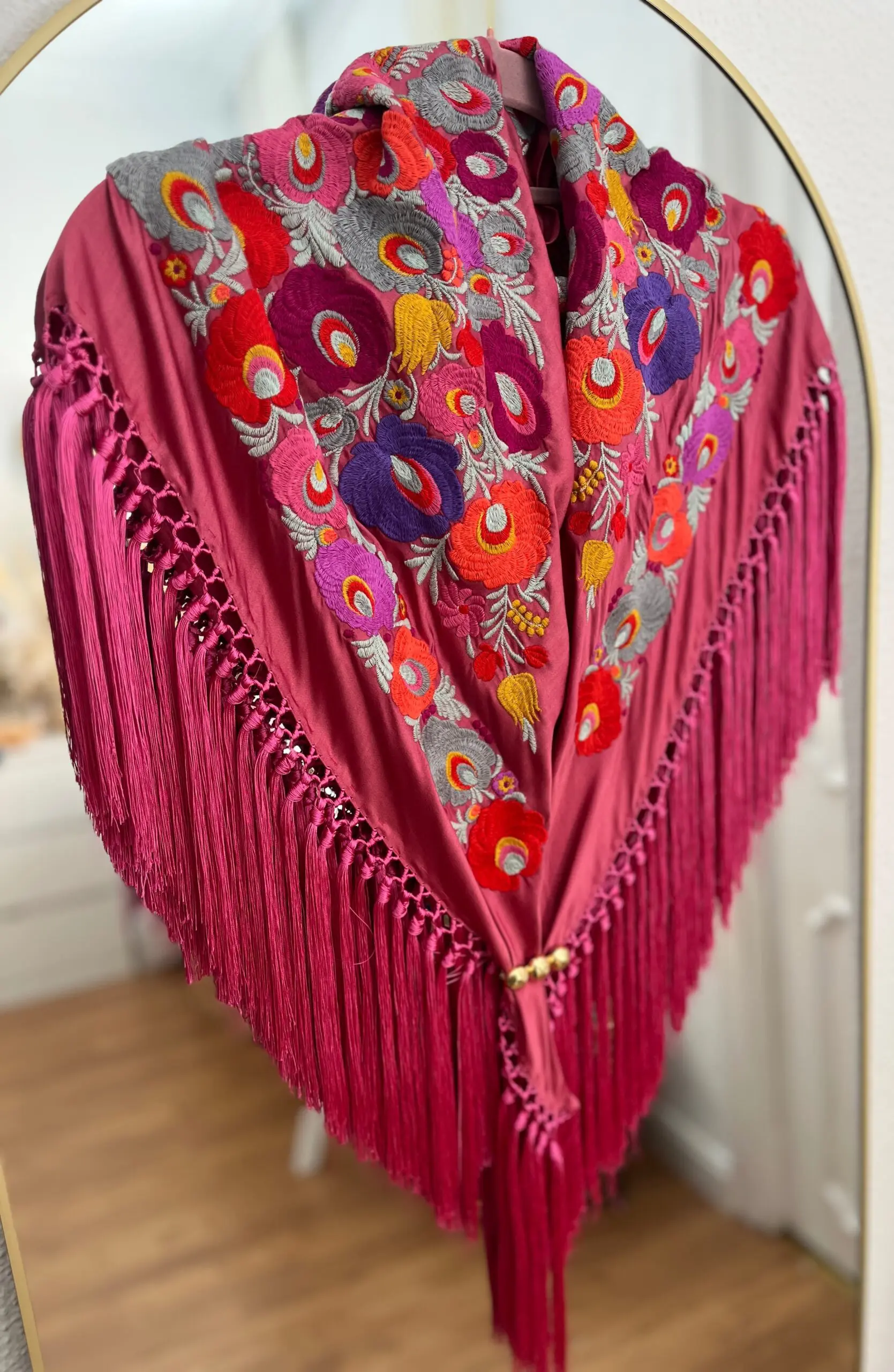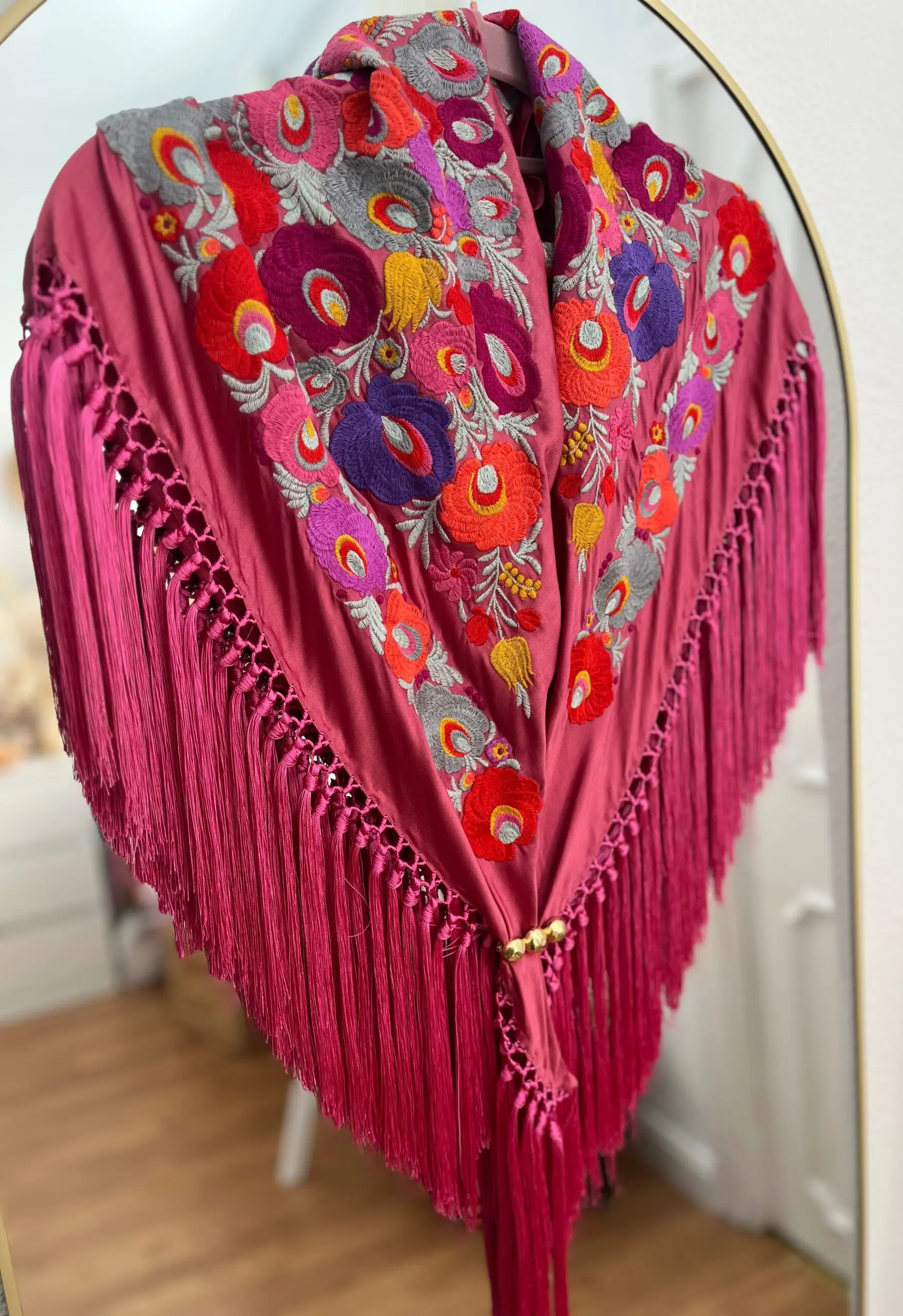 Producto artesanal. Tejido de seda hindú con viscosa. Bordado con hilo de algodón.Flecado a mano con hilo de seda de Rayón.