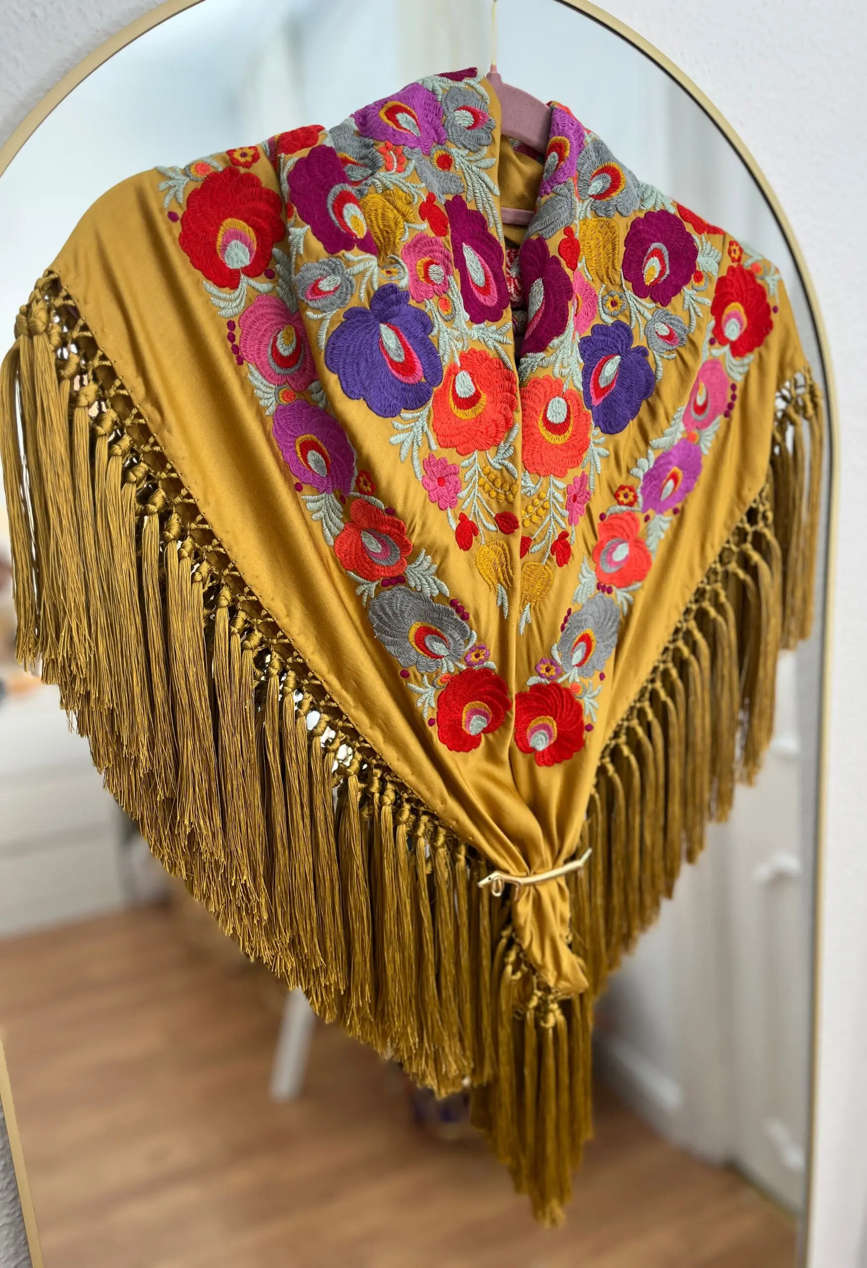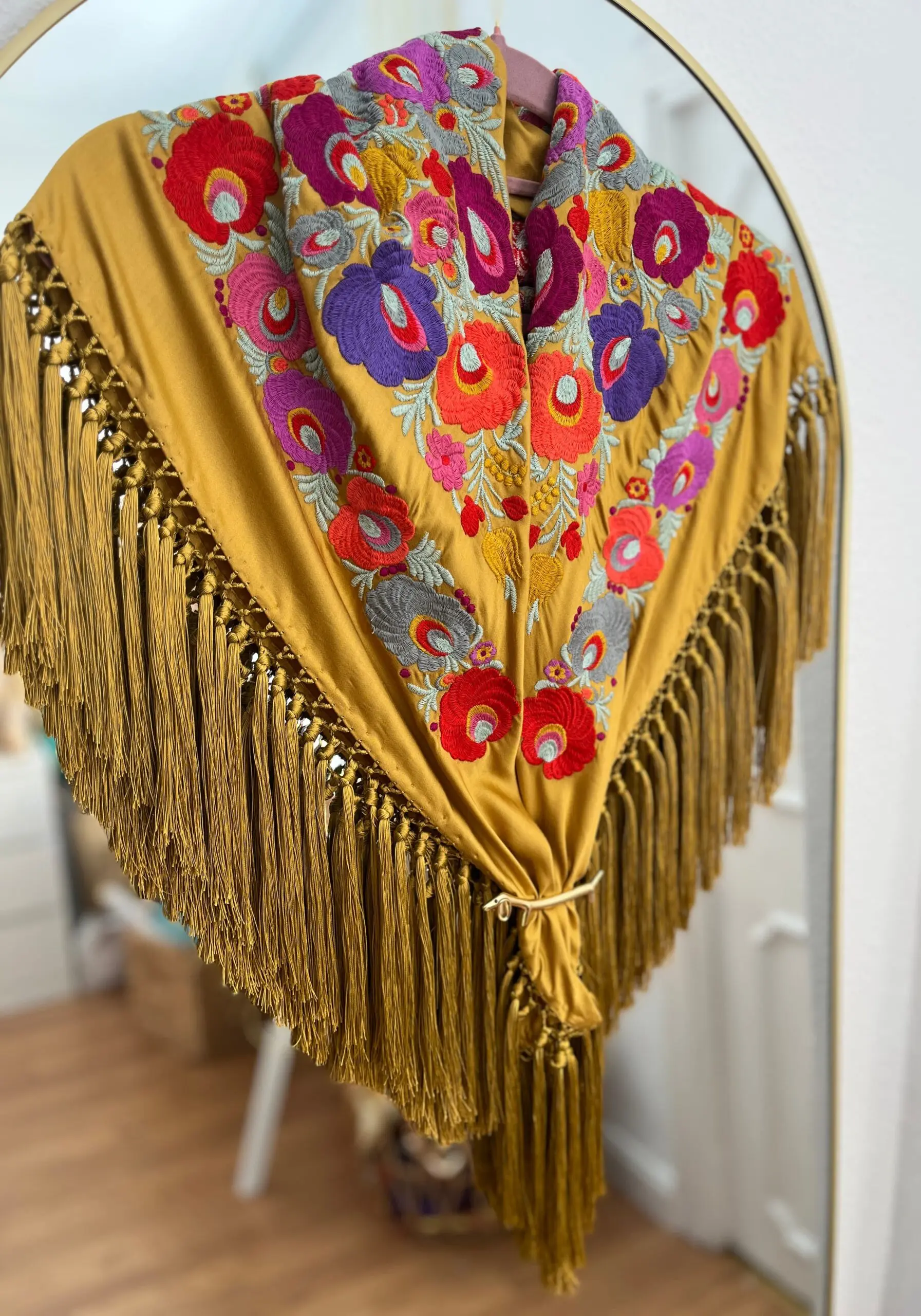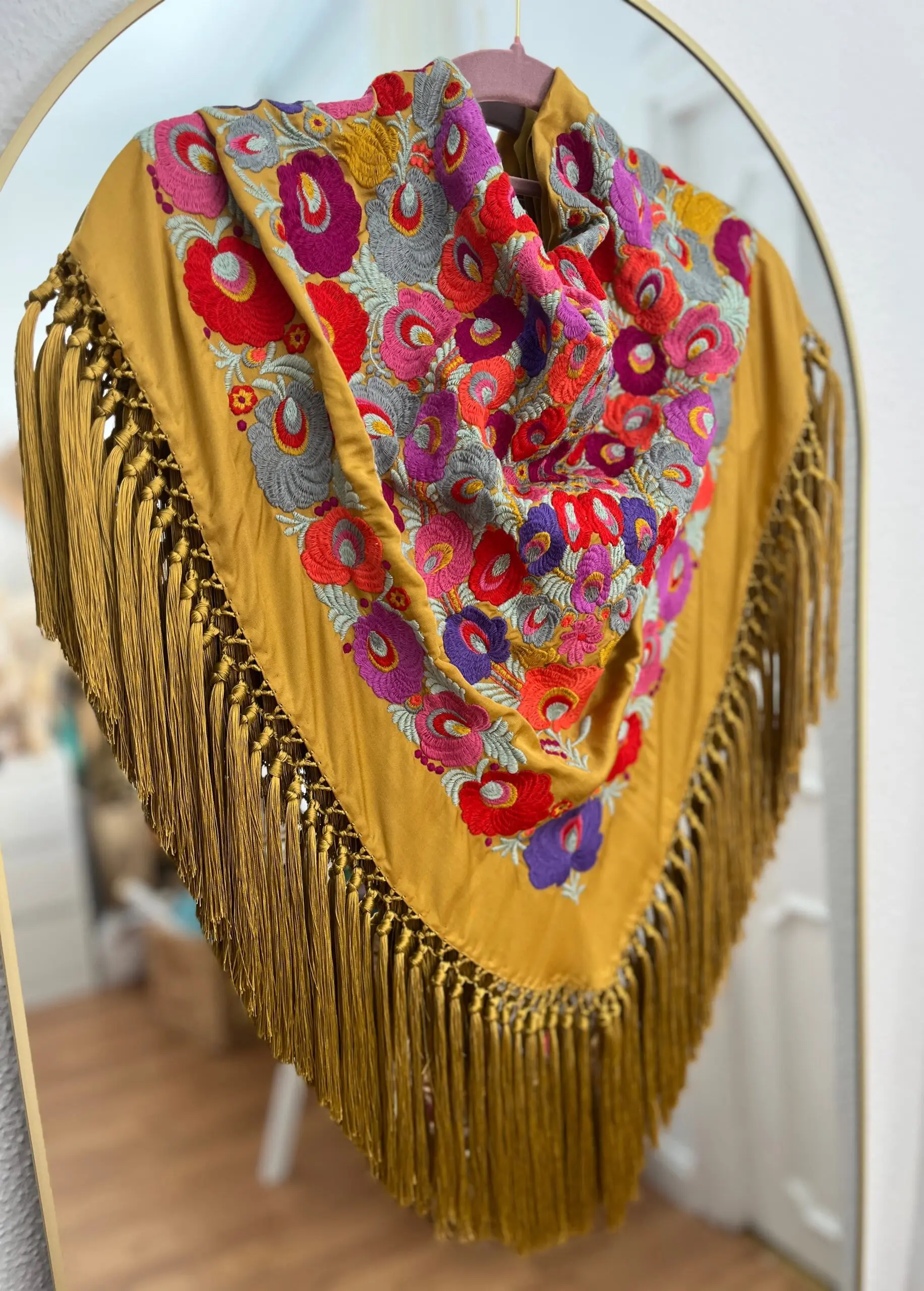 Producto artesanal. Tejido de seda hindú con viscosa. Bordado con hilo de algodón.Flecado a mano con hilo de seda de Rayón.