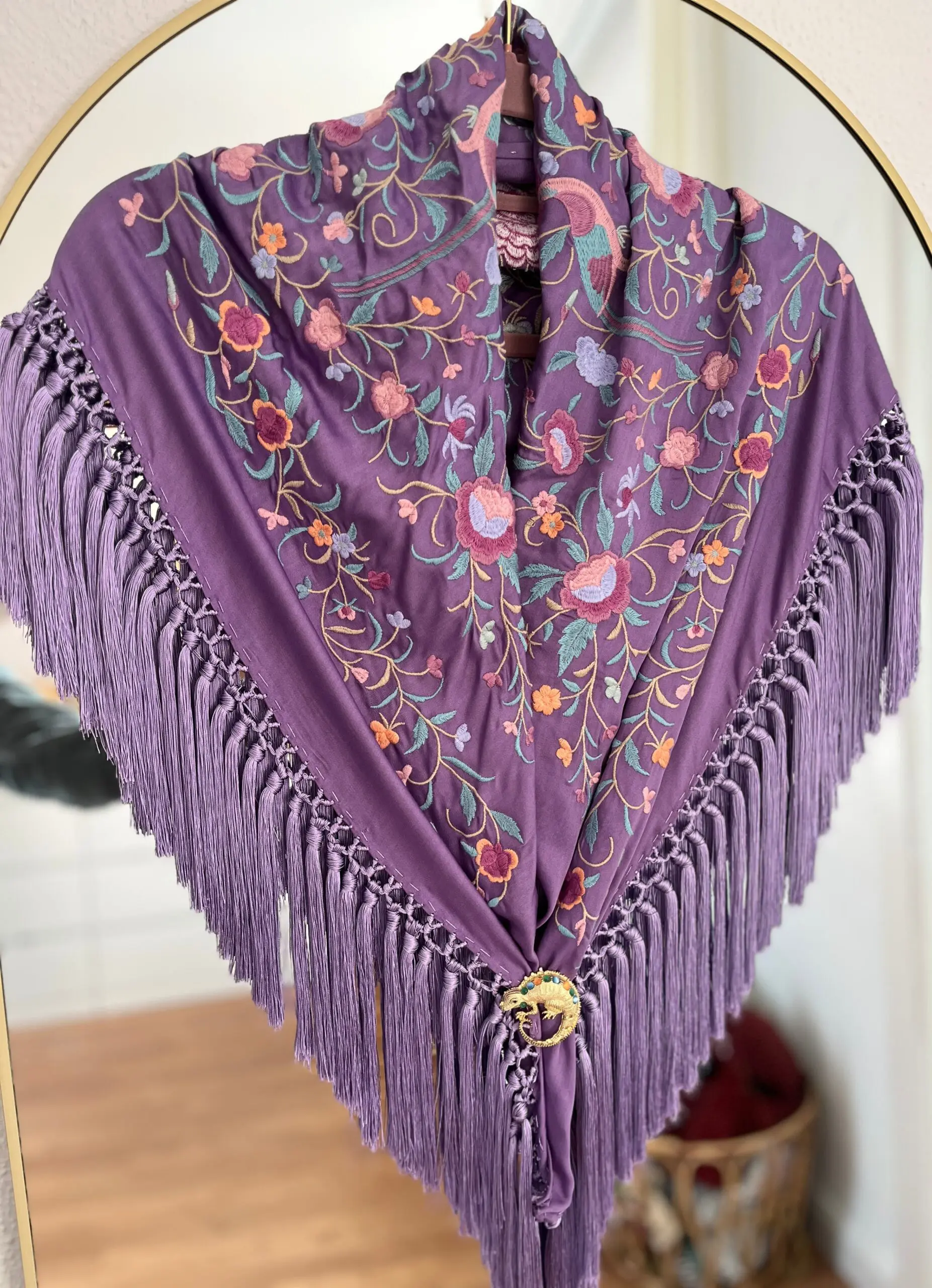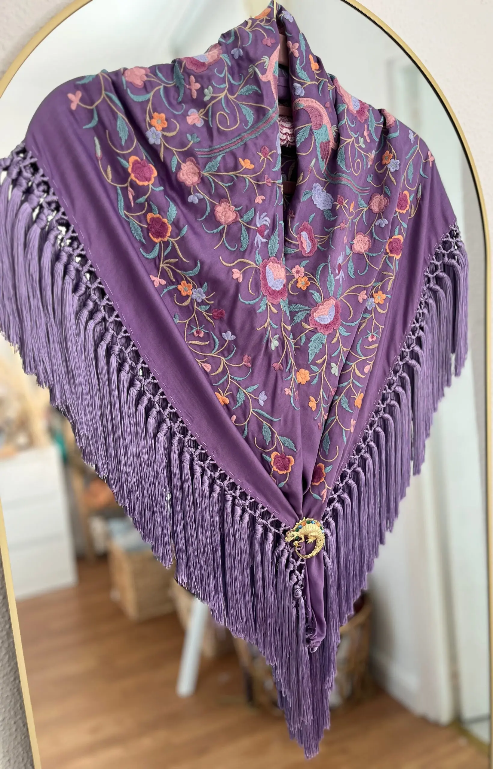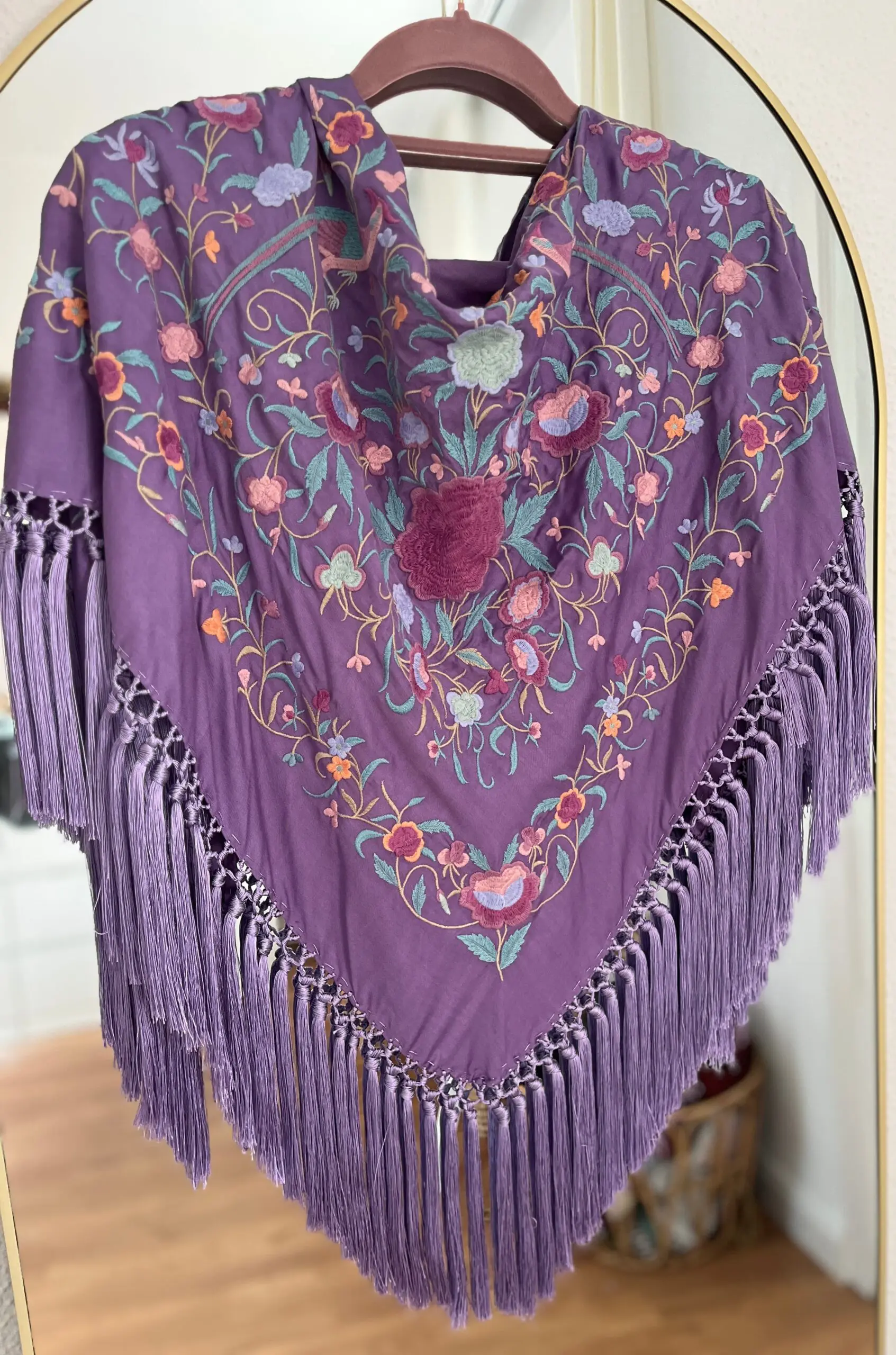Producto artesanal. Tejido de seda hindú con viscosa. Bordado con hilo de algodón.Flecado a mano con hilo de seda de Rayón.