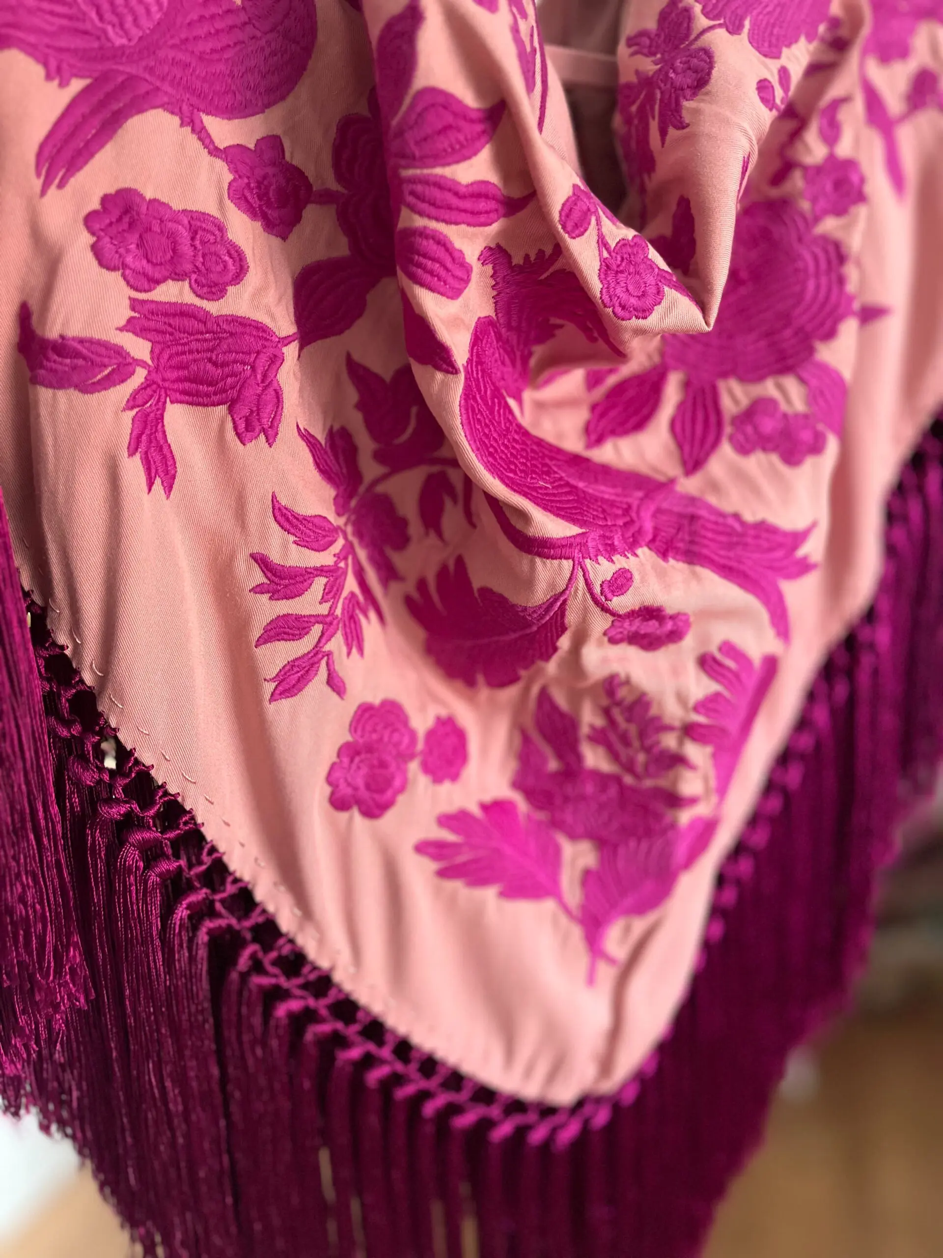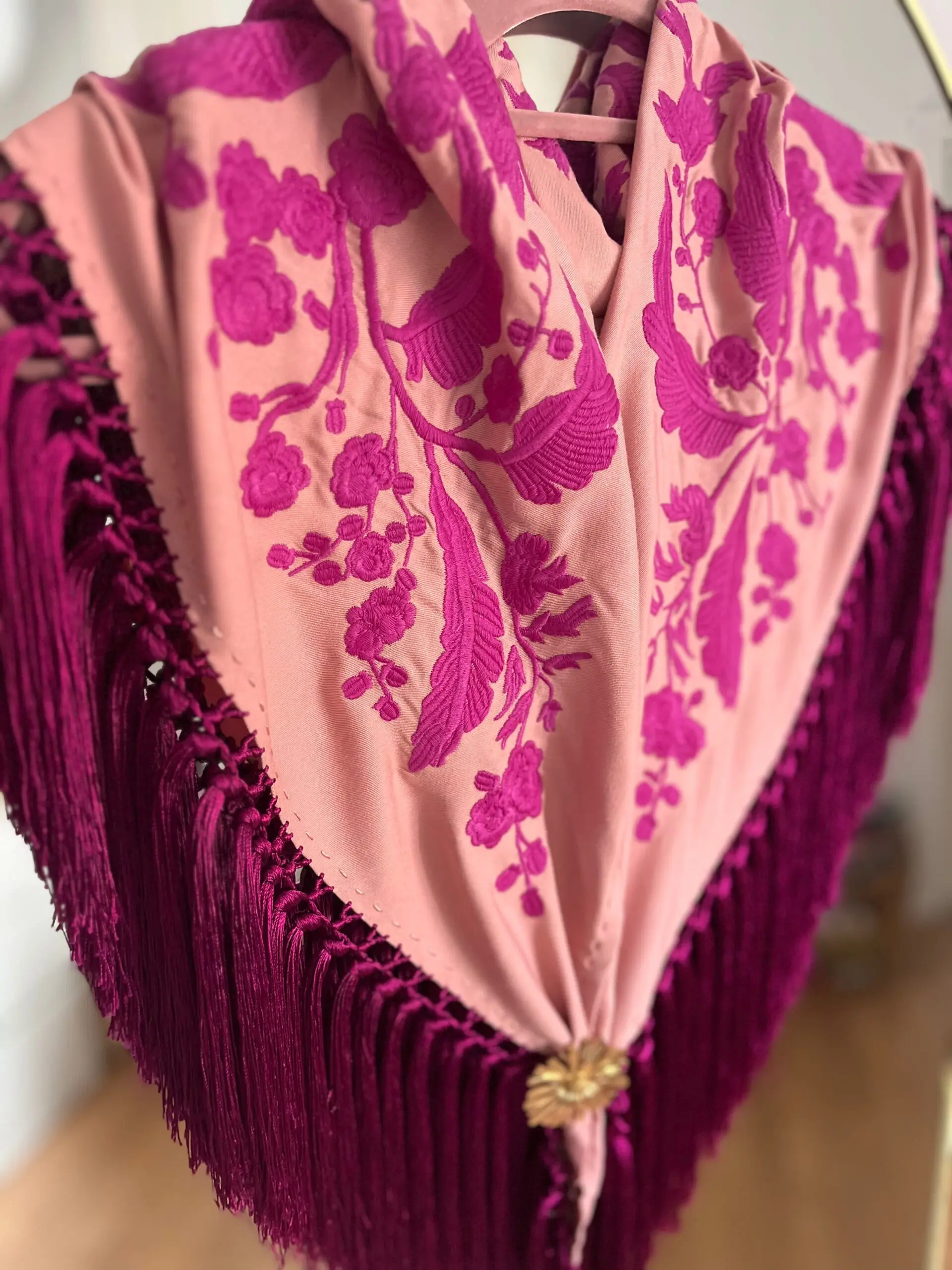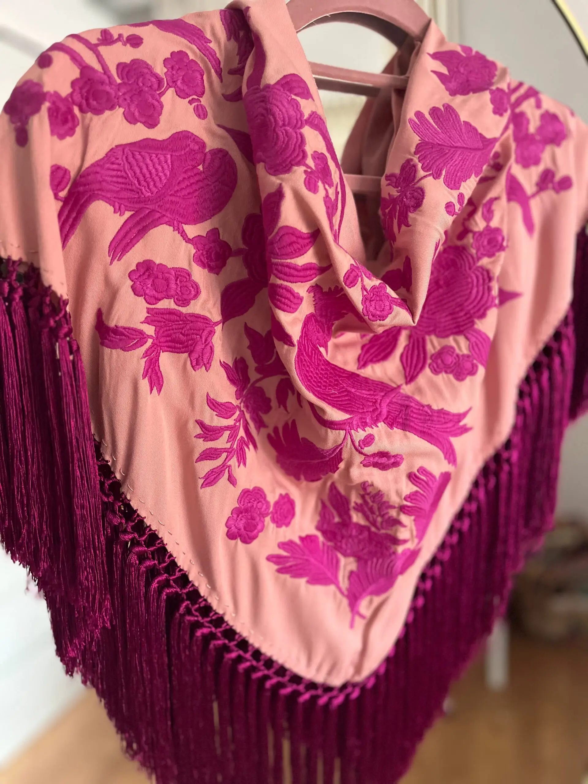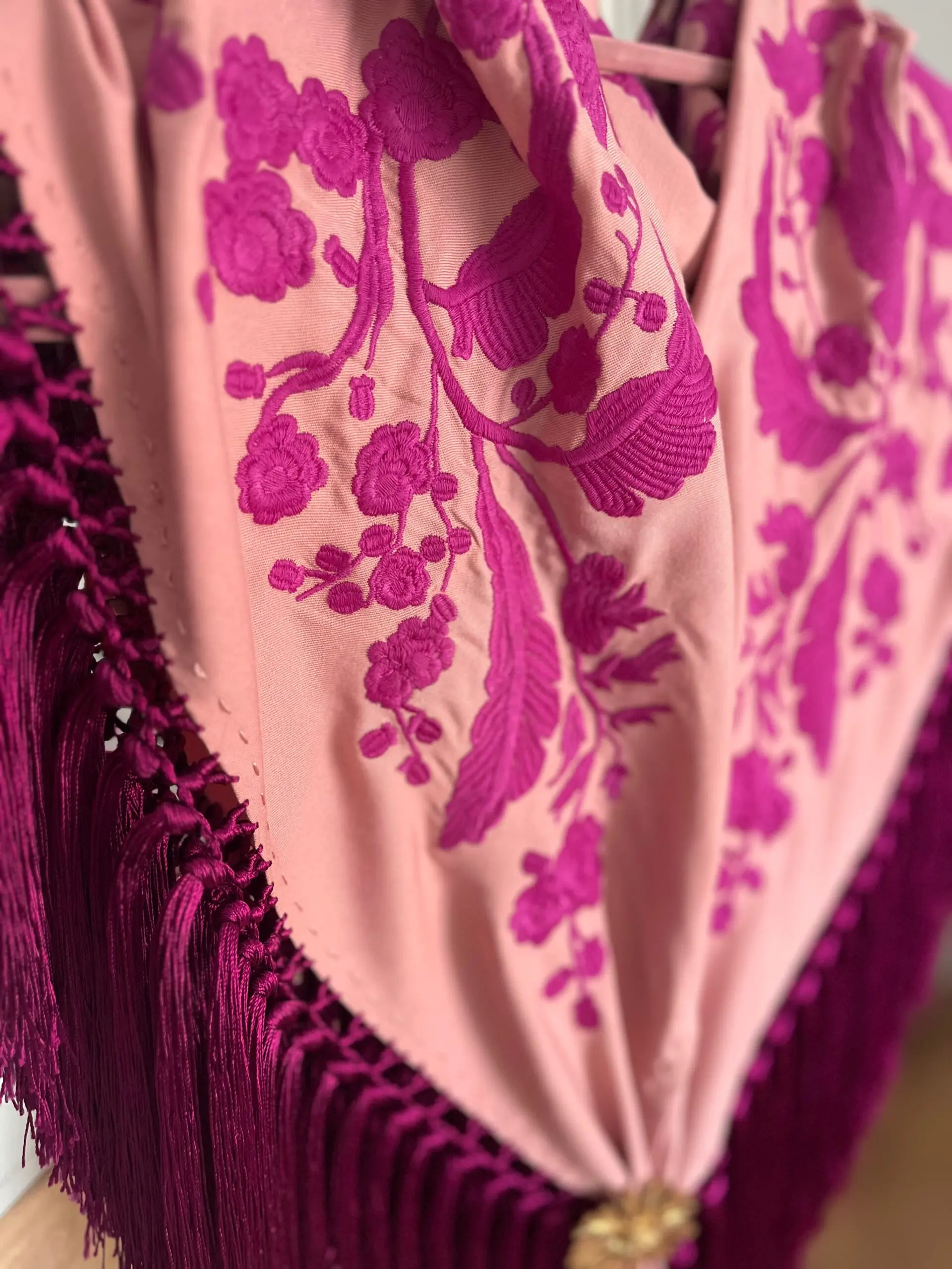 Mantoncillo artesanal flecado a mano.