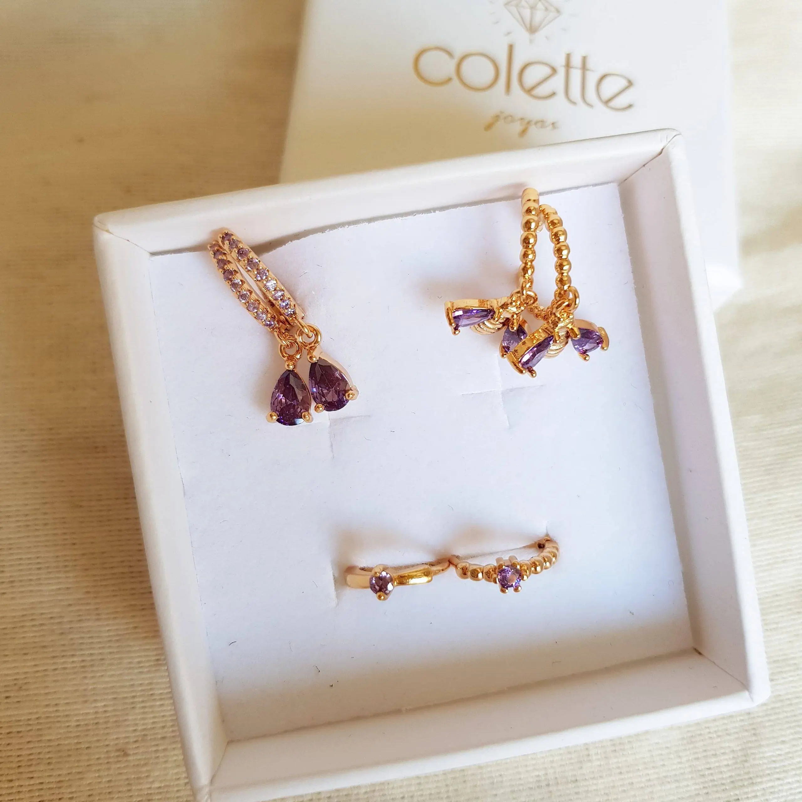 Par de aritos lágrima lila, par de aritos abeja lila, unidad arito mini pretty lila, unidad arito brillante lila