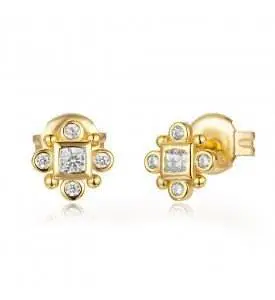 Pendientes de plata de ley chapada en oro de 18k con diseño de flor vintage