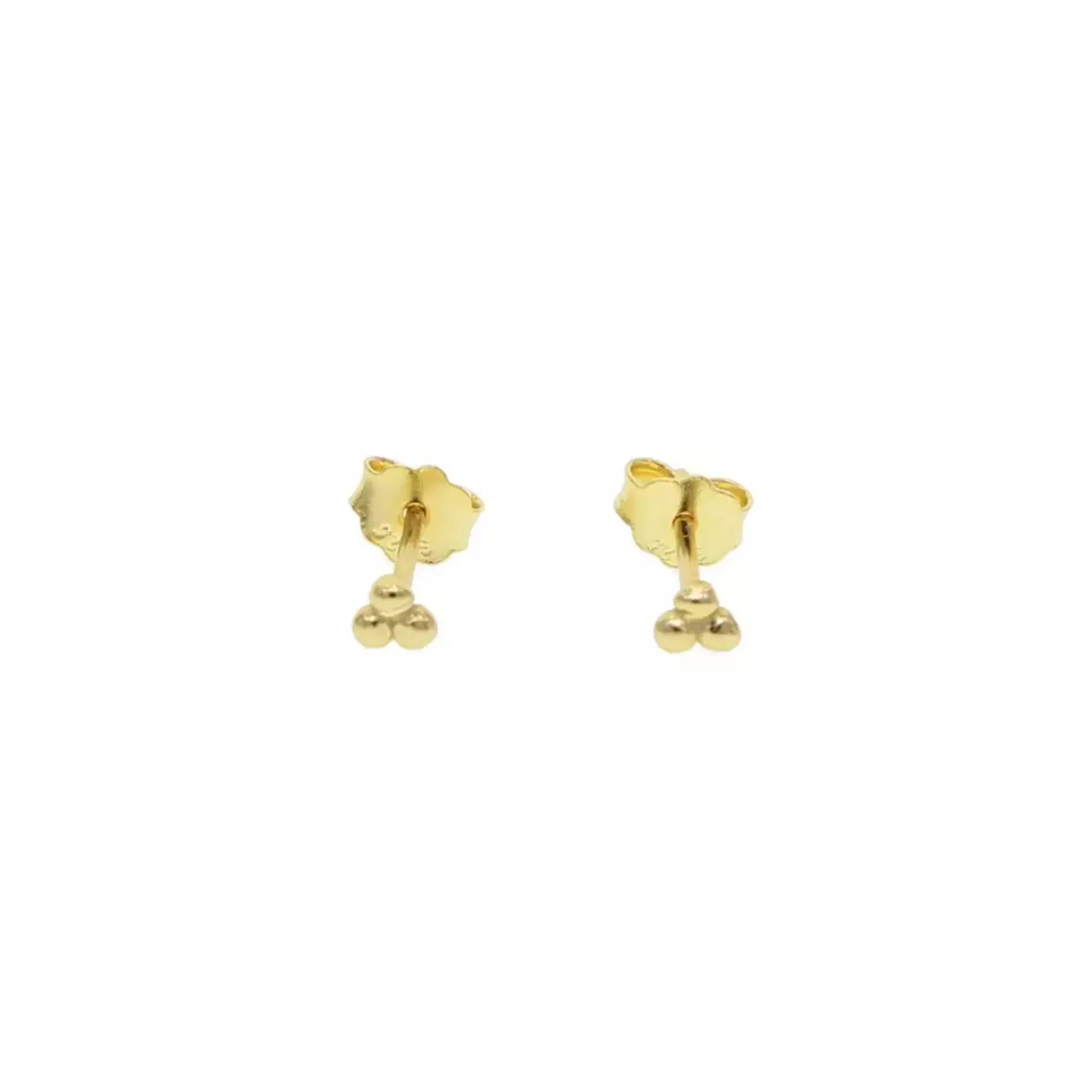 Pendientes tamaño mini de plata chapada en oro con tres bolitas pequeñas