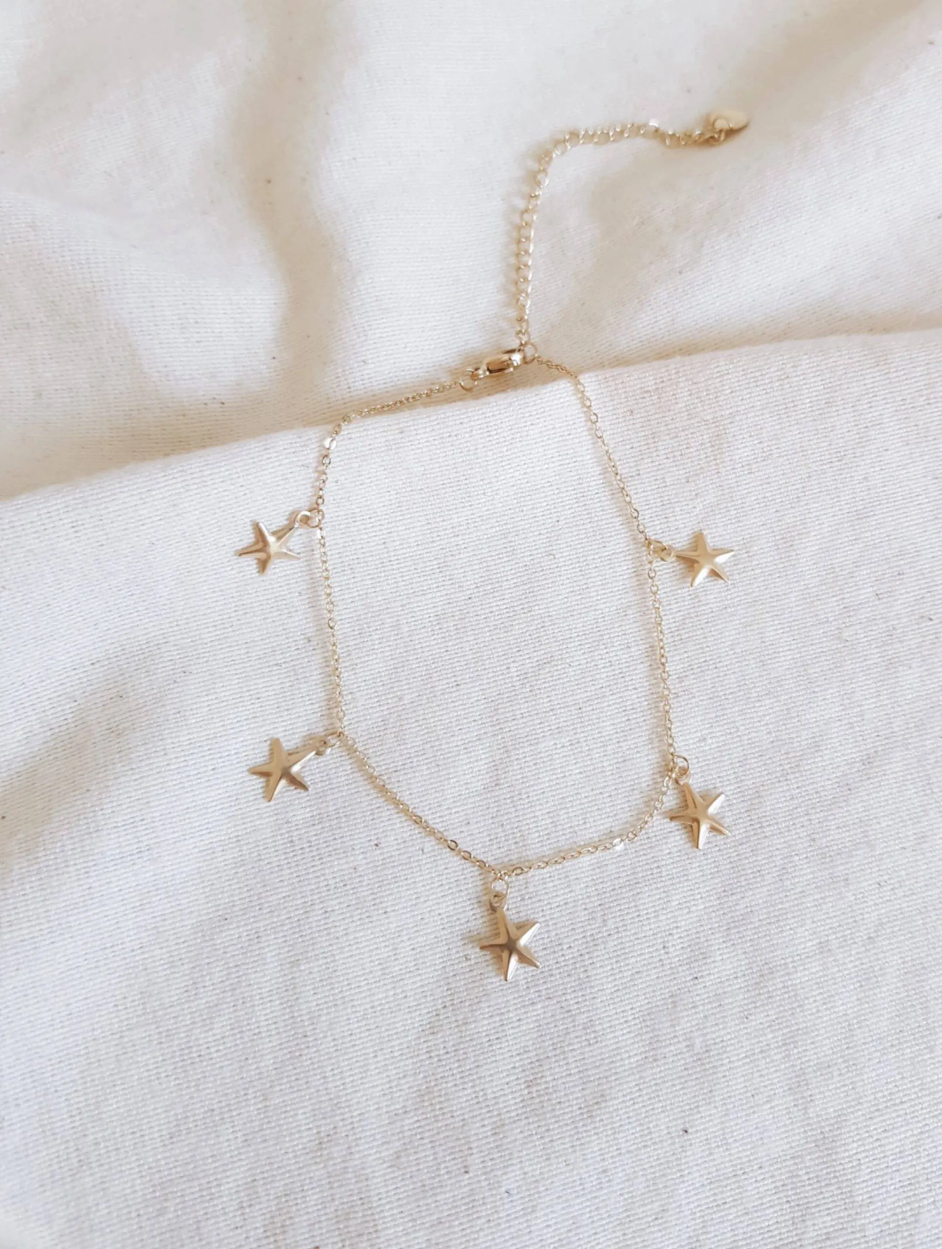 Inicio / JOYAS / PULSERAS/ TOBILLERAS / Tobillera estrellas gold